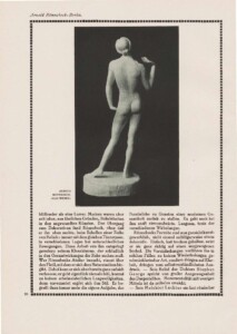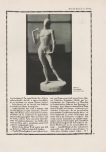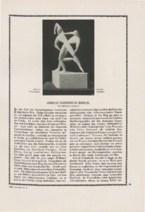 Poet Theodor Daubler wrote an article about Rönnebeck’s work in the April/May 1921 edition of Deutsche Kunst und Dekoration, see below. The article featured reproductions of Rönnebeck’s Head of Max Sidow (date unknown, possibly 1919), Combatants, Hermaphrodite (1919, based on Max Sidow’s poem of the same name), and three plasters of what were sometimes called his “Dancing Grotesques”.